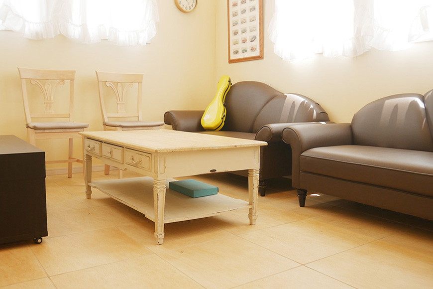 常に清潔感のある空間づくりを心がけています。白と木目を基調とした待合室でくつろいでお過ごしください。